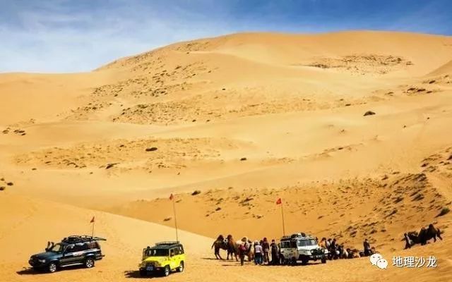第四,是沙山的泉水不仅仅增加了沙子的湿度,而且还是得毕鲁图沙峰地区有了一定的植被覆盖,沙漠植物芨芨草、黄蒿、沙米和骆驼刺等在这里顽强的生长,利用自己的躯干和根系固定着沙子,形成固定沙丘,随着沙尘不断的累积,形成高大沙山。上述这些因素成就了巴丹吉林沙漠的五奇之一:沙峰,另外四奇是鸣沙、湖泊、奇泉和古庙。