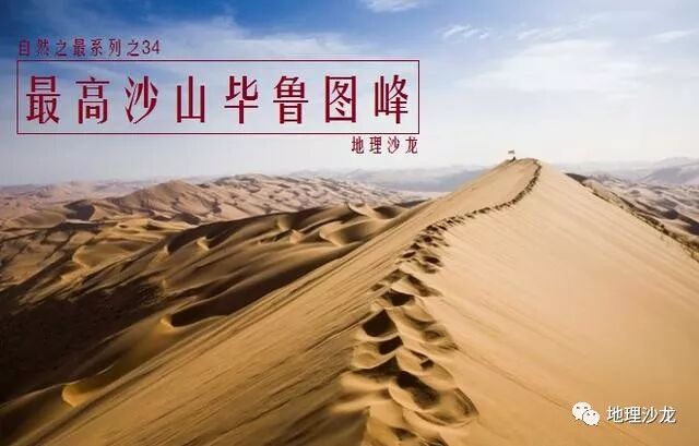 毕鲁图沙峰位于巴丹吉林沙漠的腹地,地理位置大约是东经102度、北纬39度,海拔达到1617米,相对高度超过500米,被称为“沙海珠穆朗玛峰”,是世界上沙漠第一高沙峰,比位于非洲撒哈拉沙漠的世界第二高沙峰要高70米。为什么在巴丹吉林沙漠会形成规模如此巨大的沙山呢?