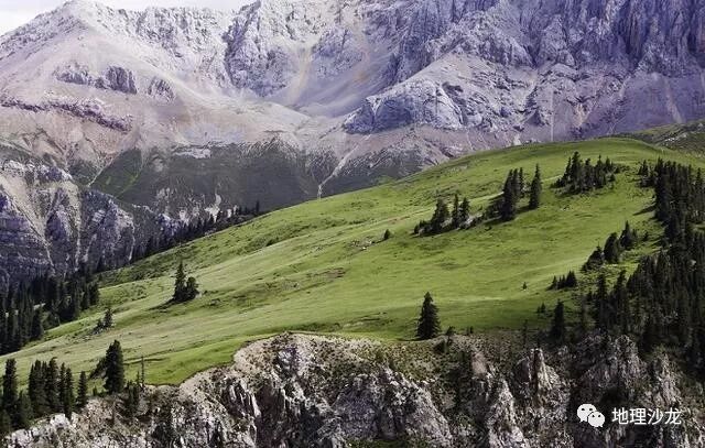 也就是说,一般垂直分异明显的山地往往是位于纬度较低的高海拔山地,同时最好是相对落差巨大。根据这个条件,在我国境内寻找,横断山区就是符合条件的区域,横断山脉由于板块的碰撞挤压而隆起的巨大褶皱山脉,加上流水的不断侵蚀,形成了山高谷深,纵列分布的地形特征,山顶多有终年积雪,落差巨大。