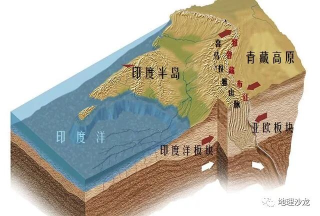 根据峡谷的形成条件,首先该地区是印度洋板块和亚欧板块之间的消亡边界,由于板块的相互碰撞挤压,形成巨大的褶皱山系,规模较小的印度洋板块俯冲到亚欧板块下方,形成了一个向下俯冲带,其位置刚好位于雅鲁藏布江谷地,从而形成了非常好的峡谷构造条件。然后,在雅鲁藏布江流水的不断向下侵蚀作用下,经过几千上万年的不断作用,最终塑造出了世界上最深的大峡谷。