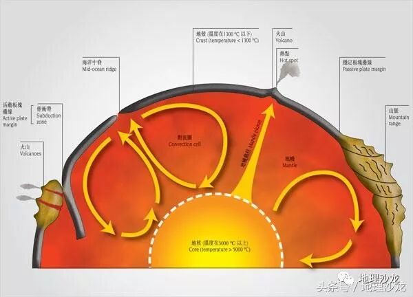 地核又可以分成外核和内核两层,地核很像地球这个大鸡蛋的蛋黄。