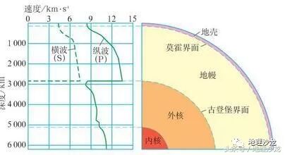 我们根据地震波的传播特性来对地球内部结构进行探测,根据地震波中横波和纵波的速度变化,我们推测地球的内部结构可以分为地壳、地幔和地核三部分。