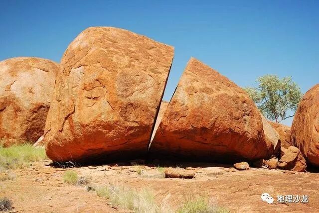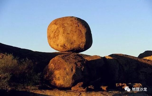 为什么在澳大利亚的这片区域会有这么多的“球状岩石”呢?形成这些大大小小岩石球的主要原因就是外力的风化作用。岩石要形成球状形状的风化,需要质地坚硬的岩石,比如岩浆岩中的侵入岩花岗岩就是理想的岩石,花岗岩是地下深处的岩浆在地下侵入其他岩层的过程中冷却凝结形成的,由于冷却过程中岩浆承受着巨大的压力,花岗岩通常具有致密坚硬的特征,很难被外力风化。