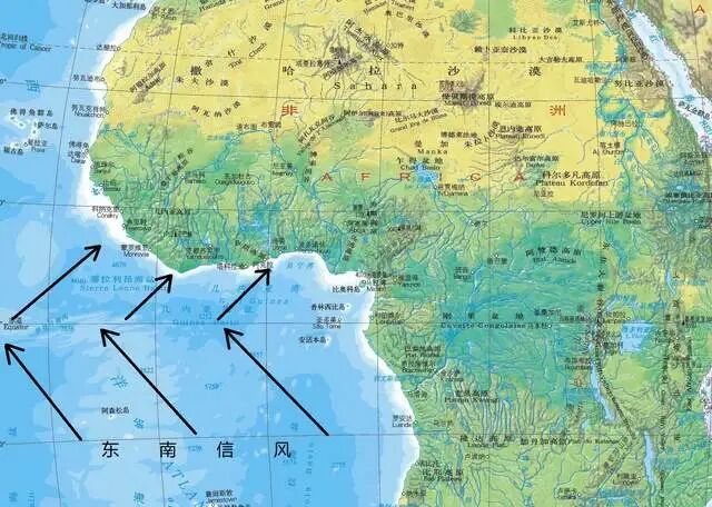 几内亚湾沿岸的西南风