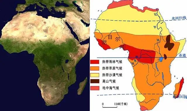 非洲卫星图和非洲气候类型分布图