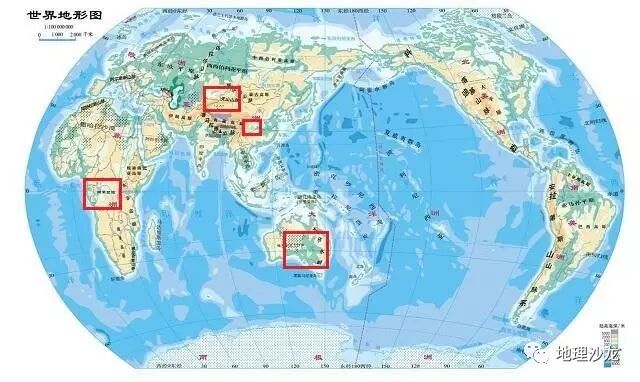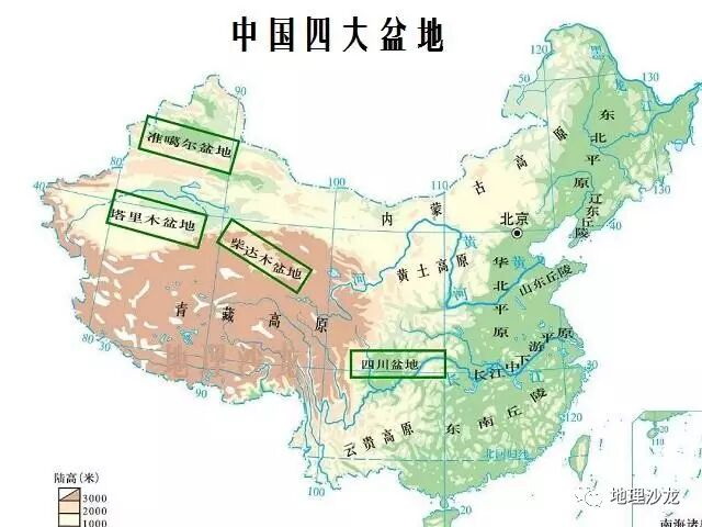 由此,在世界地形图当中,寻找盆地地形还是比较容易的,只要寻找中间低四周高的区域即可,至于盆地内的海拔没有直接关系。比如我国四川盆地内部的成都平原,海拔大概500米左右,而青藏高原上的柴达木盆地,内部海拔高达2500米以上。