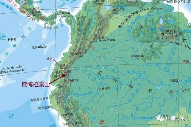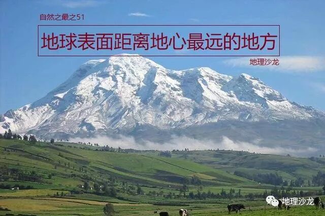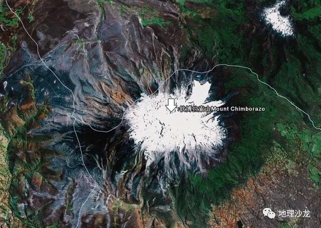 所以,距离地心最远的地点就应该位于赤道附近的地区,我们需要寻找赤道附近海拔最高的地点。在赤道经过的非洲、马来群岛和南美洲等地来寻找,我们不难找出地球表面距离地心最远的地点位于南美洲厄瓜多尔的钦博拉索山,从地心到钦博拉索山山峰,距离为大约为6384千米。