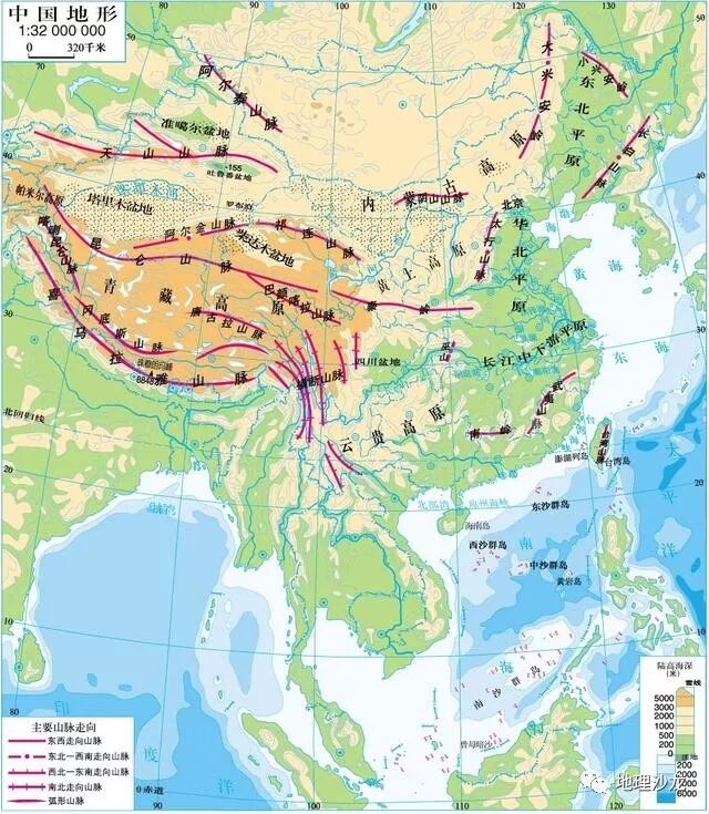 我们在进行区域地理研究的时候,通常需要描述一个区域的地形特征,一般来说一个区域地形特征的描述,包括两个方面,一是要描述该区域主要的地形类型,二是要描述该区域的地势高低起伏状况。当然,根据不同区域的实际情况,在上述两点的基础上,还可以做更为详细的特征描述,比如以中国为例,我们如何来描述中国的地形特征?