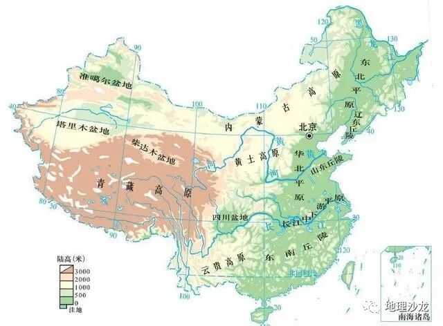 在地势方面,我国不仅仅是西高东低,在我国由西往东的数千千米范围内,明显的呈三级阶梯状分布。我国的第一级阶梯,主要包括青藏高原和柴达木盆地两大地形区;我国的第二级阶梯,主要包括塔里木盆地、准噶尔盆地、内蒙古高原、黄土高原、四川盆地和云贵高原等地形区;我国的第三级阶梯,主要包括东北平原、华北平原、长江中下游平原以及东南丘陵等地形区。