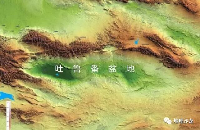 吐鲁番盆地属于典型的地堑盆地,是由于岩层断裂下陷而形成的“构造盆地”,整个吐鲁番盆地的面积大约为5万平方千米,如橄榄形态呈东西走向,长度约为245千米,南北宽度约为75千米。吐鲁番盆地中海拔低于海平面的区域大约有4050平方千米,其中地势最低的艾丁湖位于吐鲁番盆地的南部山麓,有限的地下水在此处汇聚形成了一个湖泊。
