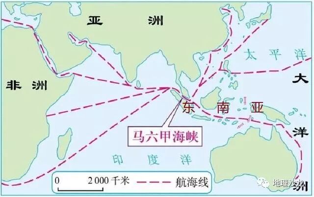 从相对位置来看,东南亚位于亚洲的东南部,地处亚洲和大洋洲,太平洋与印度洋之间的“十字路口”,交通地理位置十分优越。位于东南亚马来半岛和苏门答腊岛之间的马六甲海峡,是船只从欧洲、非洲、西亚和南亚地区往东航行到东南亚和东亚港口的最短航线必经之地,是连接太平洋和印度洋的重要海上通道。