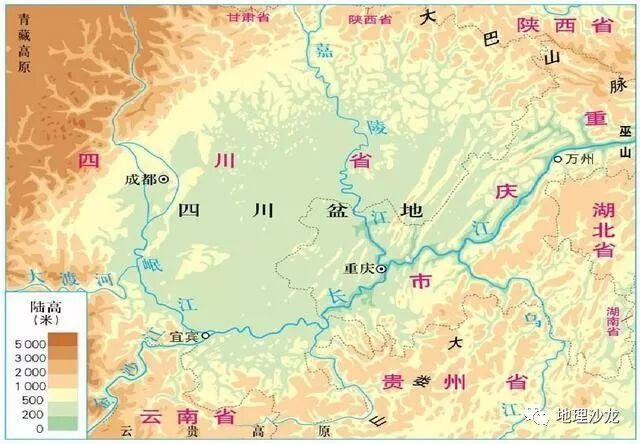 四川盆地地形图