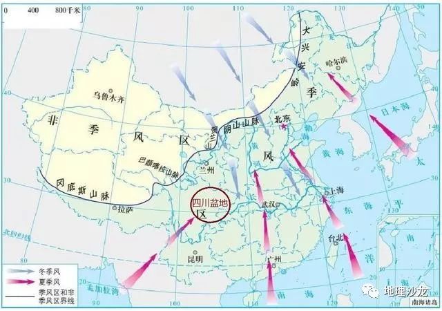 我国的季风区分布图