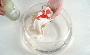 为了还原一下清洗的过程,我在新内裤上倒了实验血包再全部抹开,让它完全渗透进纤维里。