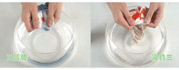 他不会遇水融化,而是直接打入到敌人内部来瓦解污渍。再难洗的血渍遇到它,三十秒内就会缴械投降,清洗得干干净净。拿其他品牌的内衣清洗剂和它做对比,肉眼可见的直接把它们秒成渣了。