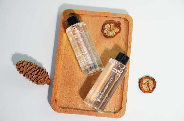 透明而清澈的液体,没有添加增稠剂、荧光剂。质地非常薄透清润,上手不粘稠,不会为了追求漂亮的颜色而添加色素。