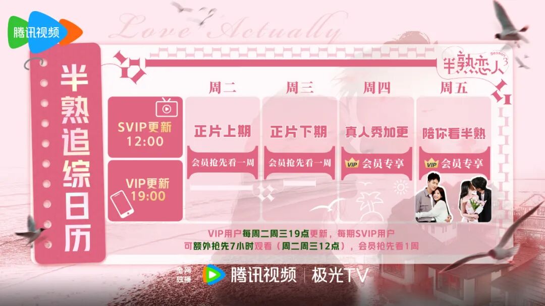 2月27日中午12点《半熟剧透篇》免费更新;2月27日晚7点正片首播,VIP用户每周二周三19点更新,SVIP用户限时福利,每期可额外抢先7小时观看(周二周三12点)。