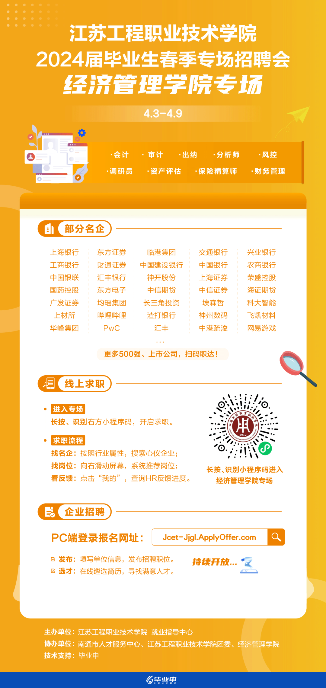 为贯彻落实教育部关于2024届毕业生就业工作的总体部署,深入开展就业育人工作,持续推进毕业生与用人单位精准供需对接,为我校毕业生高质量就业拓宽渠道,现决定举办专场网络招聘活动。
