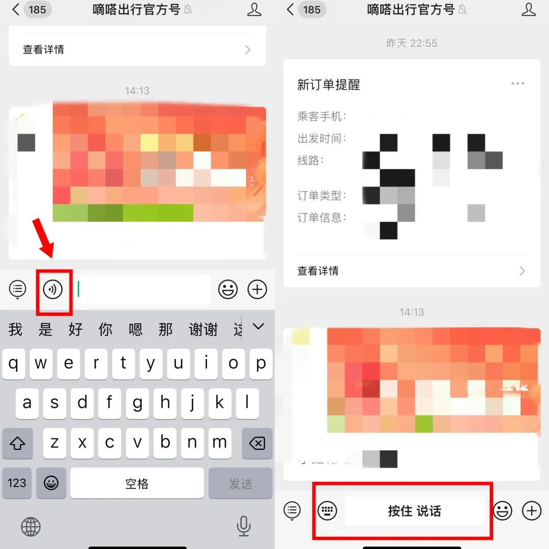 在“嘀嗒出行官方号”后台,直接发送语音条即可