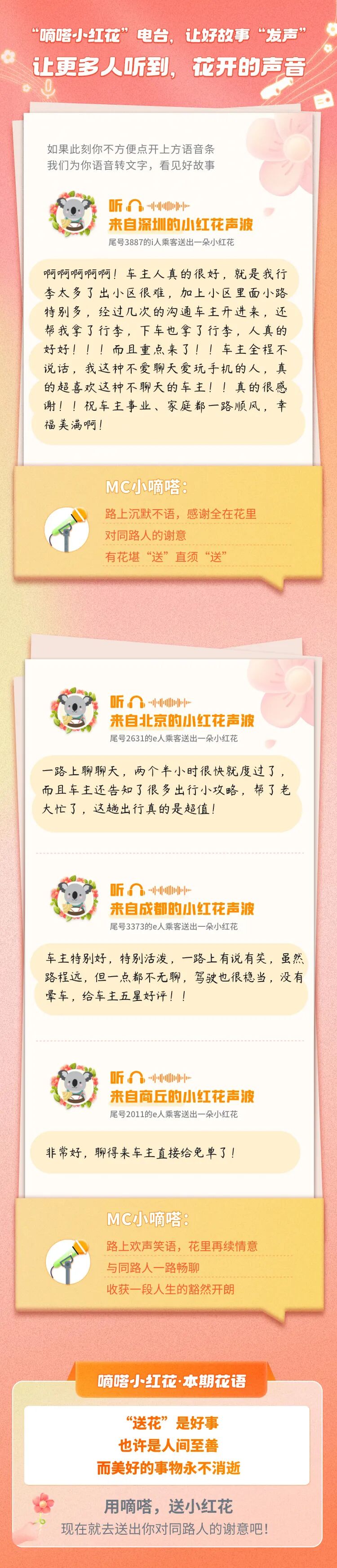 如果大家在后台发送“用嘀嗒送小红花”语音留言