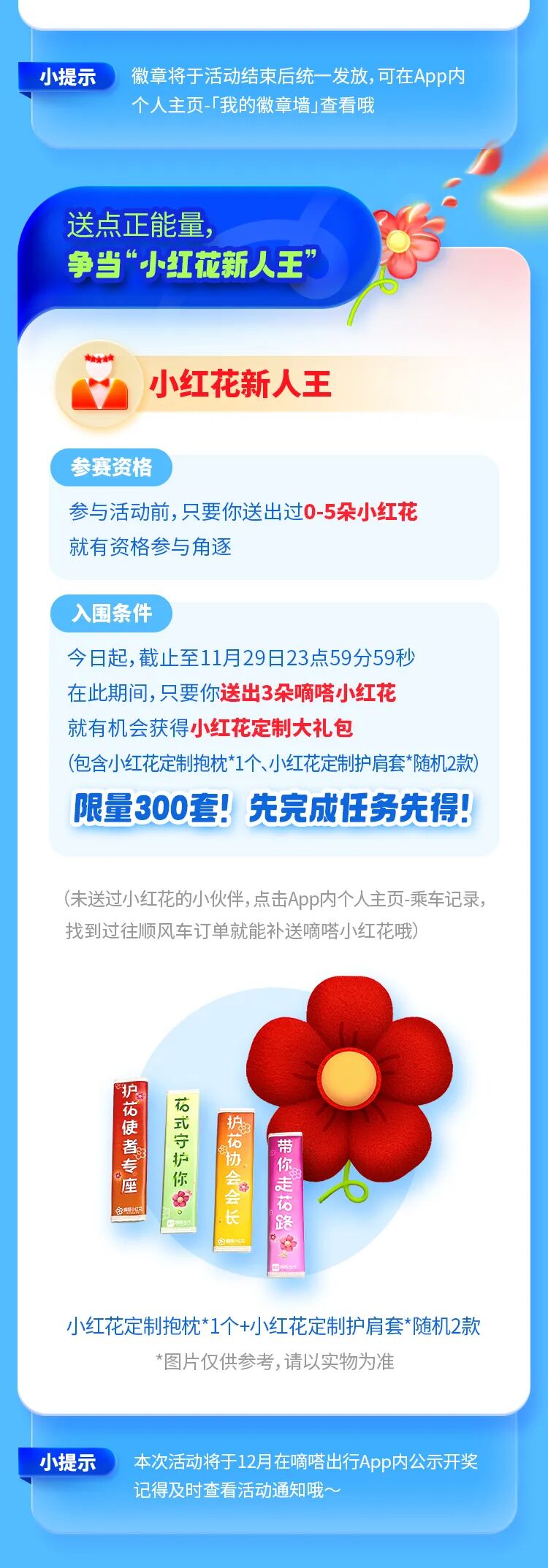 嘀嗒小红花2周年 限量抱枕和徽章来了!
