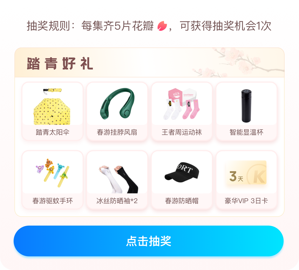 活动期间开通指定套餐获得花瓣每集齐五片花瓣即可免费抽取大奖!