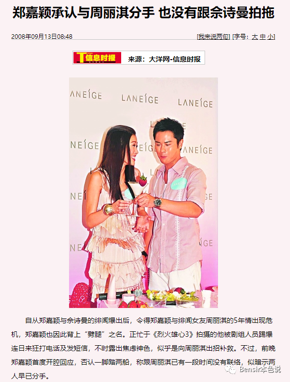而郑嘉颖是周丽淇前男友这事儿大家都知道了吧。