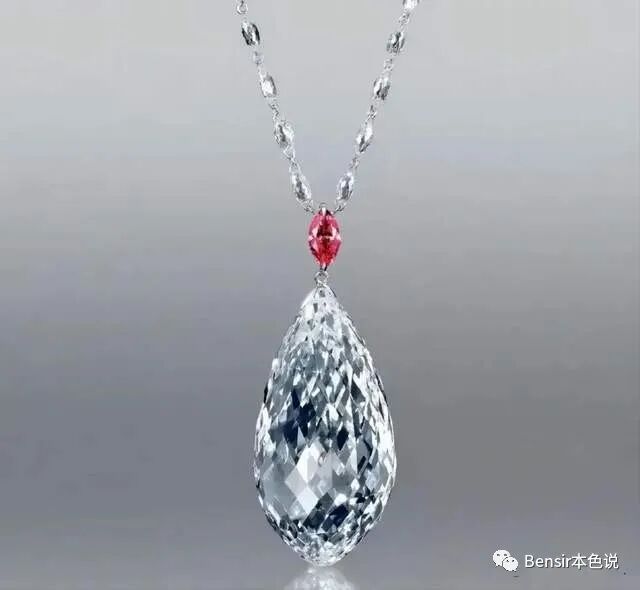 这颗钻石是全球最大的水滴型钻石,美国宝石学会(GIA)鉴定为D/IF Type IIa级,打磨及净度皆达顶级水平。