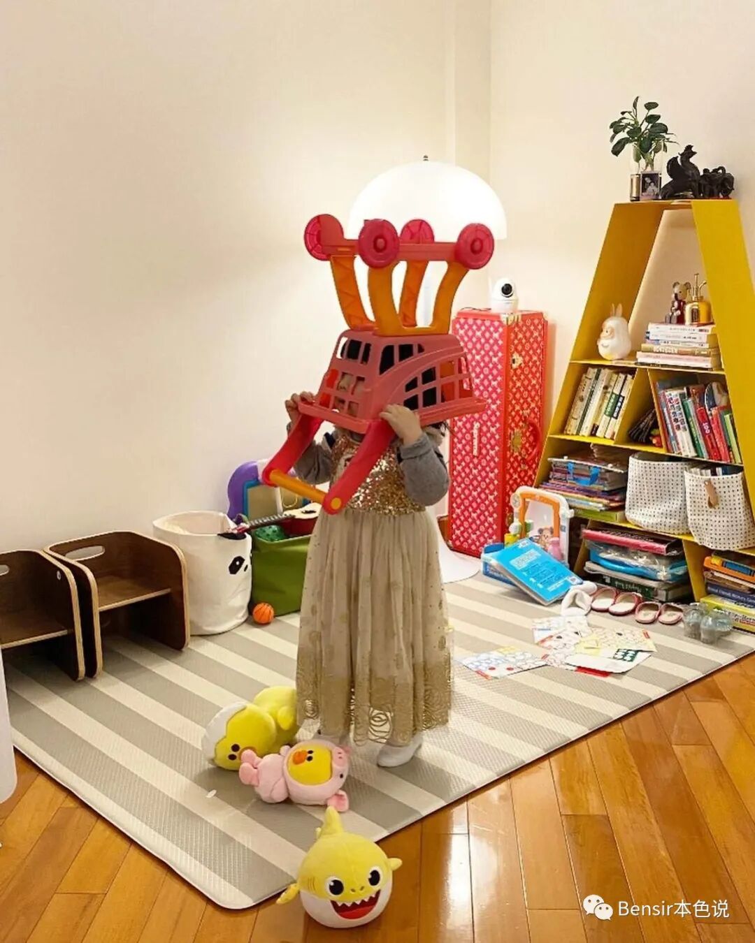 以前Lucy的玩具到处摆,现在她有了专属空间,有没有看到书架旁边的红色supreme×LV的滑板盒,价值40万,也是她的玩具。