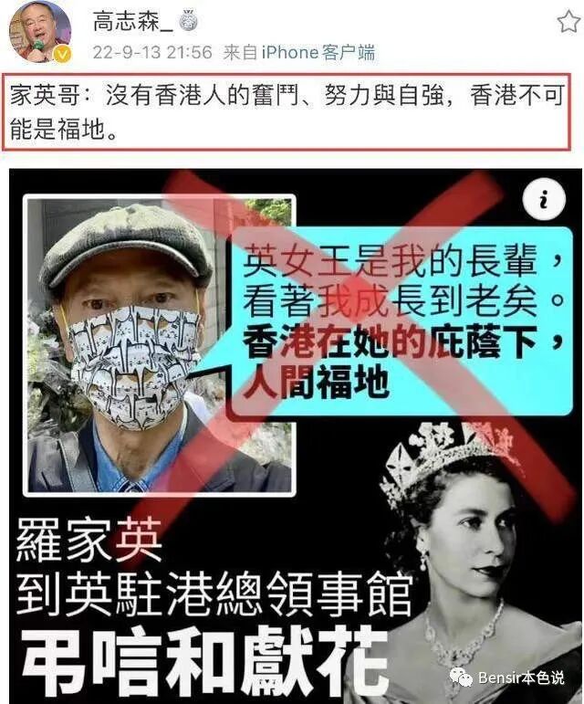 英女皇去世后,罗家英老师怀着悲痛的心情更新社媒: