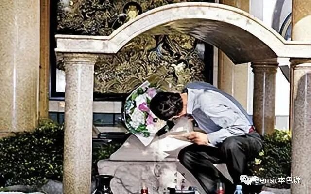 他穿着长袖衬衫搭配西装裤,深情肃穆地把一大把娇艳欲滴的鲜花放在林淑如的雕像前,然后再小心翼翼的摆放出林淑如爱吃的凉拌小黄瓜。