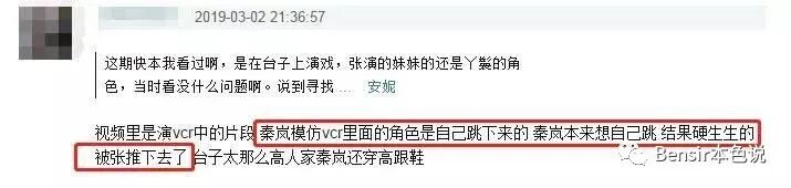 节目里有个环节设置是秦岚重现剧中的经典情节,从高台上跳下去。