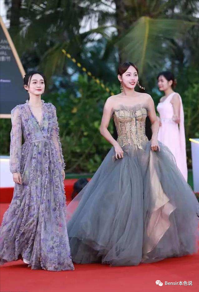 张嘉倪、何泓姗一同亮相红毯,张嘉倪身穿雾霾灰纱裙气质满分,何泓姗身穿紫色碎花长裙清新靓丽。