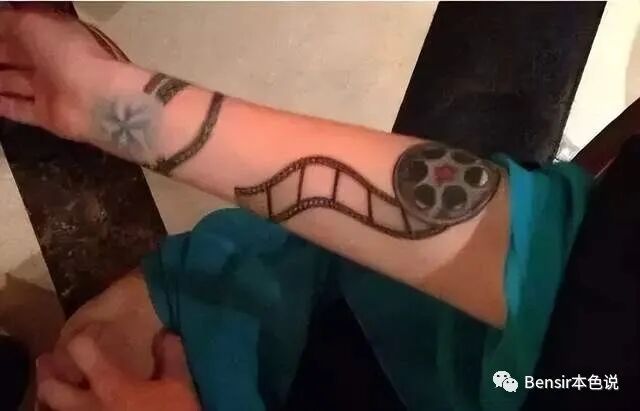 范晓萱手腕上有个电影胶片纹身,代表着她的电影梦,可见她是爱电影的。(当然也有说法范晓萱的资源都来自周迅)
