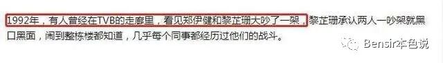 1992年,有人在TVB走廊里看到黎芷珊和郑伊健大吵一架。