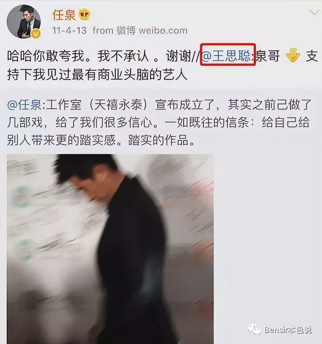 之后,思聪在微博上晒出了和任泉李冰冰的合影。