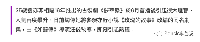 新丽要本土化亦舒作品《玫瑰的故事》,女主定了刘亦菲。
