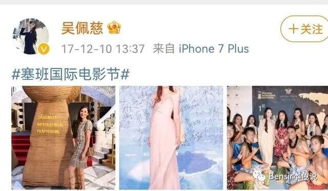 吴佩慈首先在微博发布了带#塞班电影节#tag的内容。