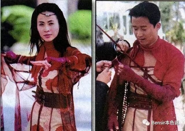 张柏芝曾经和刘德华演对手戏,刘德华已经被威压吊在空中,但张柏芝还没到位。