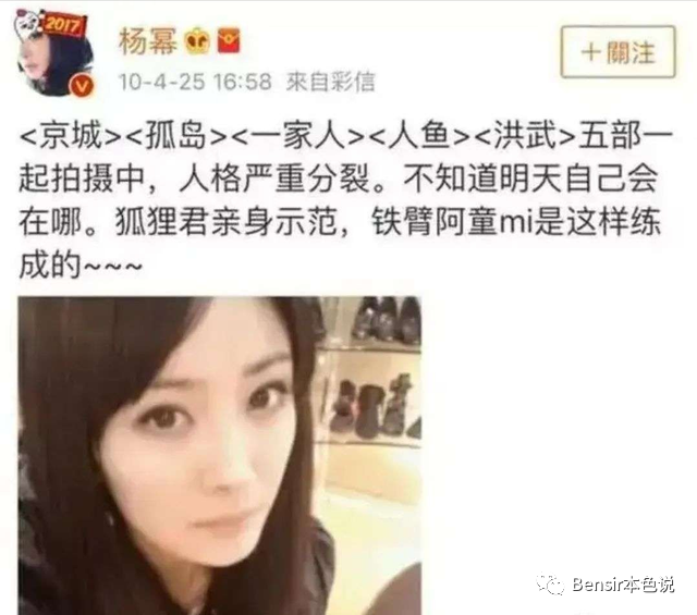 她还在微博上亲口承认一次拍五部戏,拍到人格分裂。
