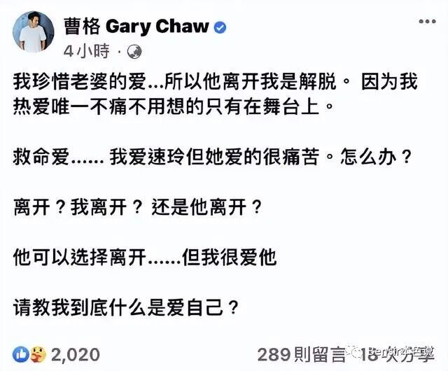“爸哪儿”魔咒继续发酵,继撕得不可开交的夏克立黄嘉千后,曹格吴速玲终于还是发表了离婚声明。