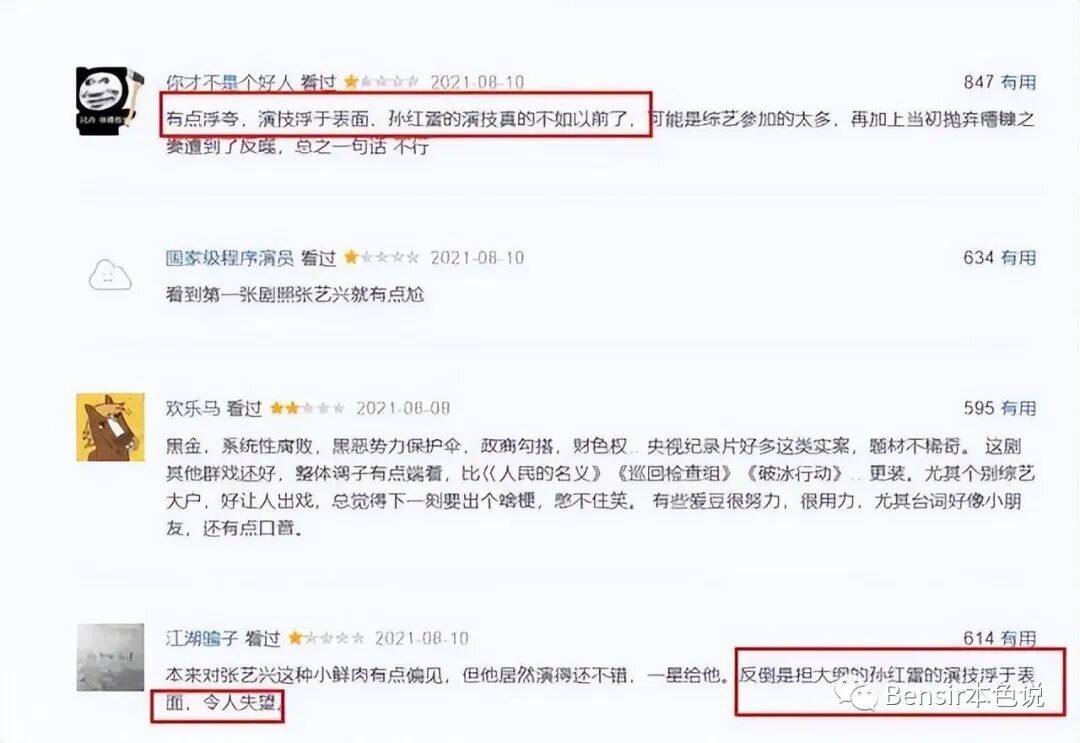 而观众的评价也认为“孙红雷演技浮夸”“浮于表面,令人失望”。
