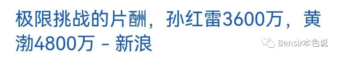 这个采访播出半年后,孙红雷参加综艺《极限挑战》被曝片酬3600万,录12集,单价300万一集。