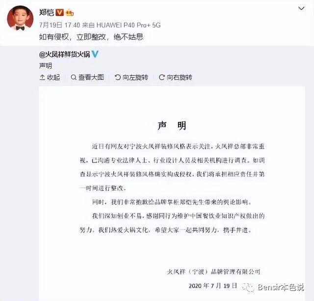 2020年,郑恺的火锅店“龙凤祥”涉及侵权上了热搜。