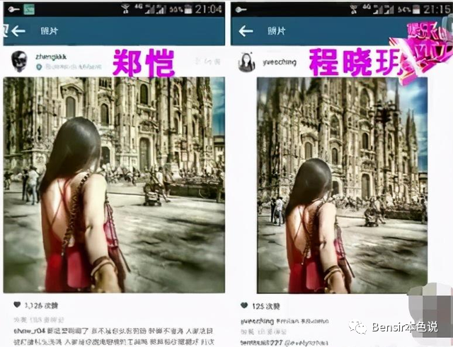 一位叫程晓玥的女子,晒出一张男友视角的照片,郑恺自己也发了同款。