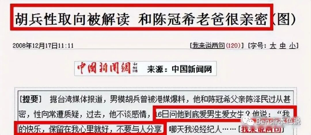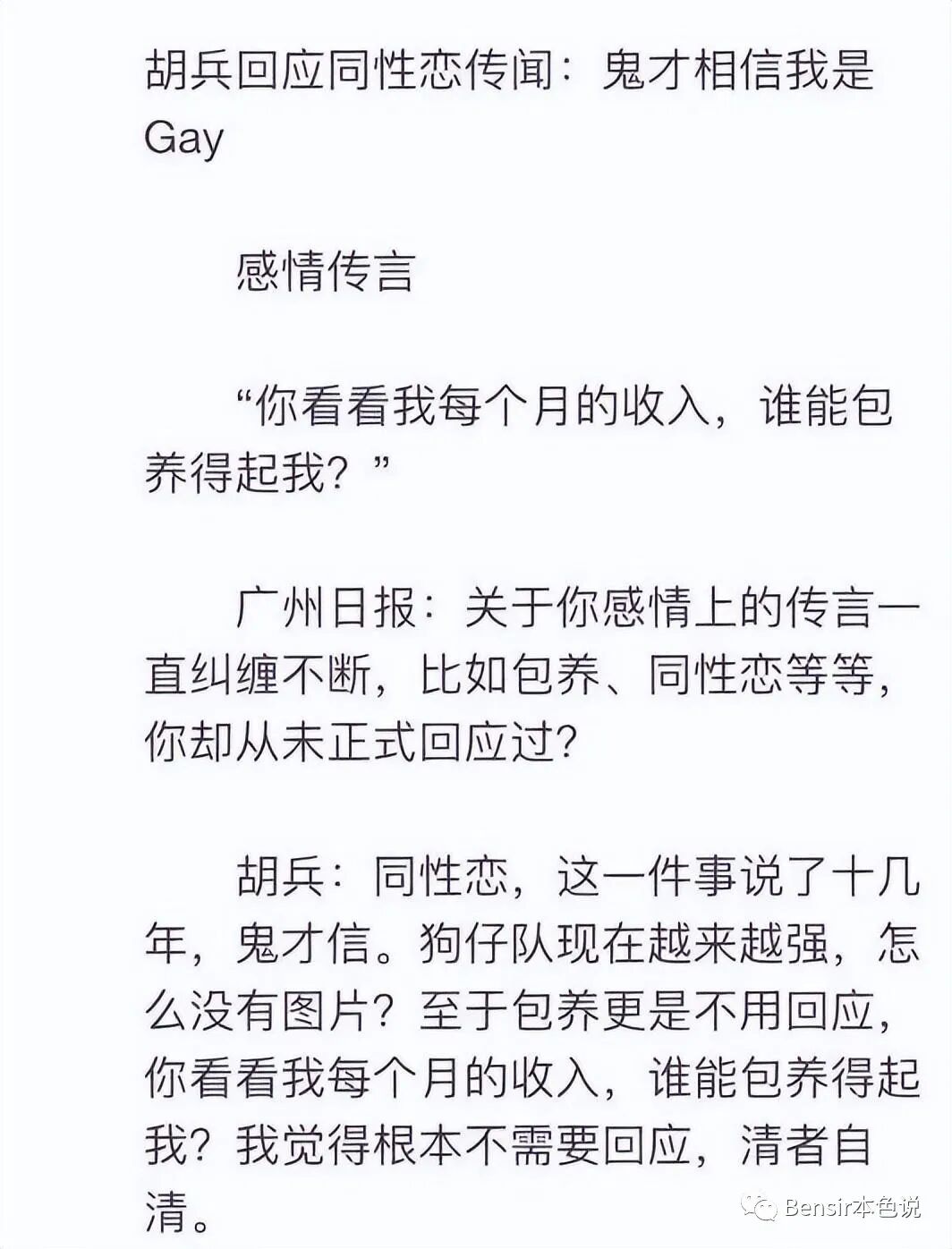 一时间,胡兵的性向成了街头巷尾热议的话题。