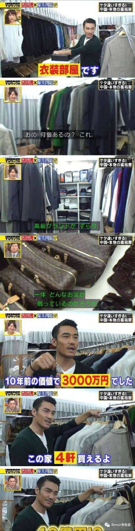 胡兵的衣帽间让日本人大呼过瘾,衣服全部是一线蓝血品牌,加起来价值约2亿人民币。