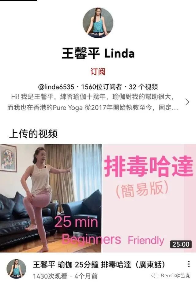 她现在在油管拍视频教瑜伽,做了好几年了,只有1000多粉丝,她还在持续更新。