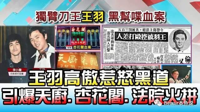 原来王羽到台湾后,基本已经离开了演艺圈,改混黑道。