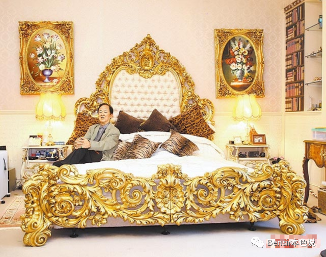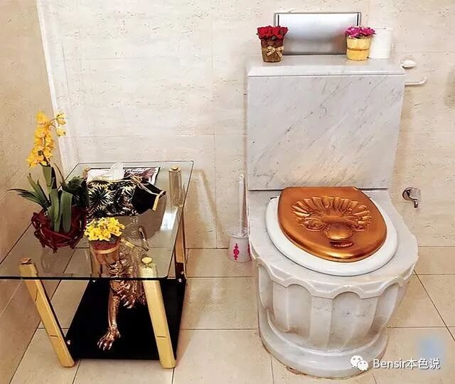 从吃饭的餐桌到睡觉的大床,包括卫生间的马桶,都是金碧辉煌。